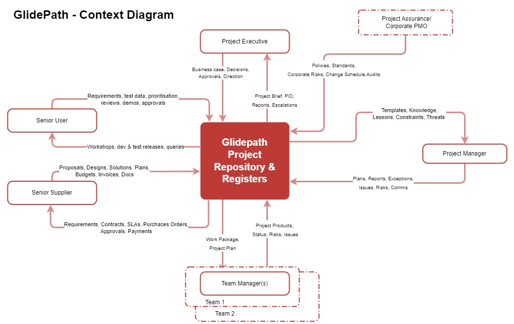 Glidepath is built around a streamlined project management approach for ICT work. It takes the backbone of PRINCE2, adds practical Agile habits, and presents everything through readable processes, guides and templates.